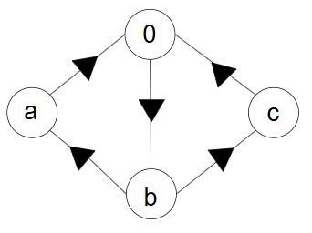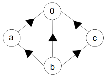 5本の辺に向きを割り当てるとき、例えば以下のような場合にはDAGになります。