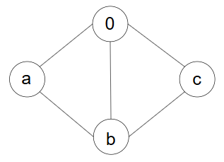 頂点 $1,2,3$ を順に $a,b,c$ とすると、グラフ $G_{a,b,c}$ は以下の図のようになります。